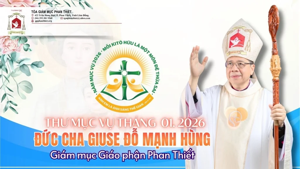GIÁO PHẬN PHAN THIẾT: THƯ MỤC VỤ THÁNG 01/2026 Giám mục Giuse Đỗ Mạnh Hùng 01/01/2026 WGPPT (30/5/2025) – Ngày 26/12/2025, Đức cha Giuse Đỗ Mạnh Hùng có thư mục vụ 01/2026 gửi cộng đoàn dân Chúa Giáo phận Phan Thiết. Sau đây là nguyên văn thư mục vụ của Đức Giám mục Giáo phận […]